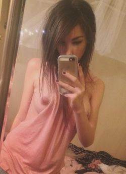Грудастая девушка с милым личиком раздевается наголо во время соло-селфи