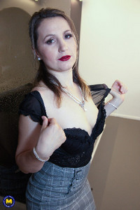 35 летняя милфа в чулочках показывает свои натуральные сиськи и круглую попку в соло фотосессии