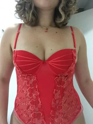 Кучерявая милфа в красном корсете показывает анальчик и сочную пизденку (9 фото)