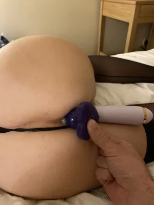 Описание: Пышная зрелая дамочка в чулочках видимо сильно завелась и начала похотливо позировать перед камерой, показывая выбитую пизду с фаллосом в попке.