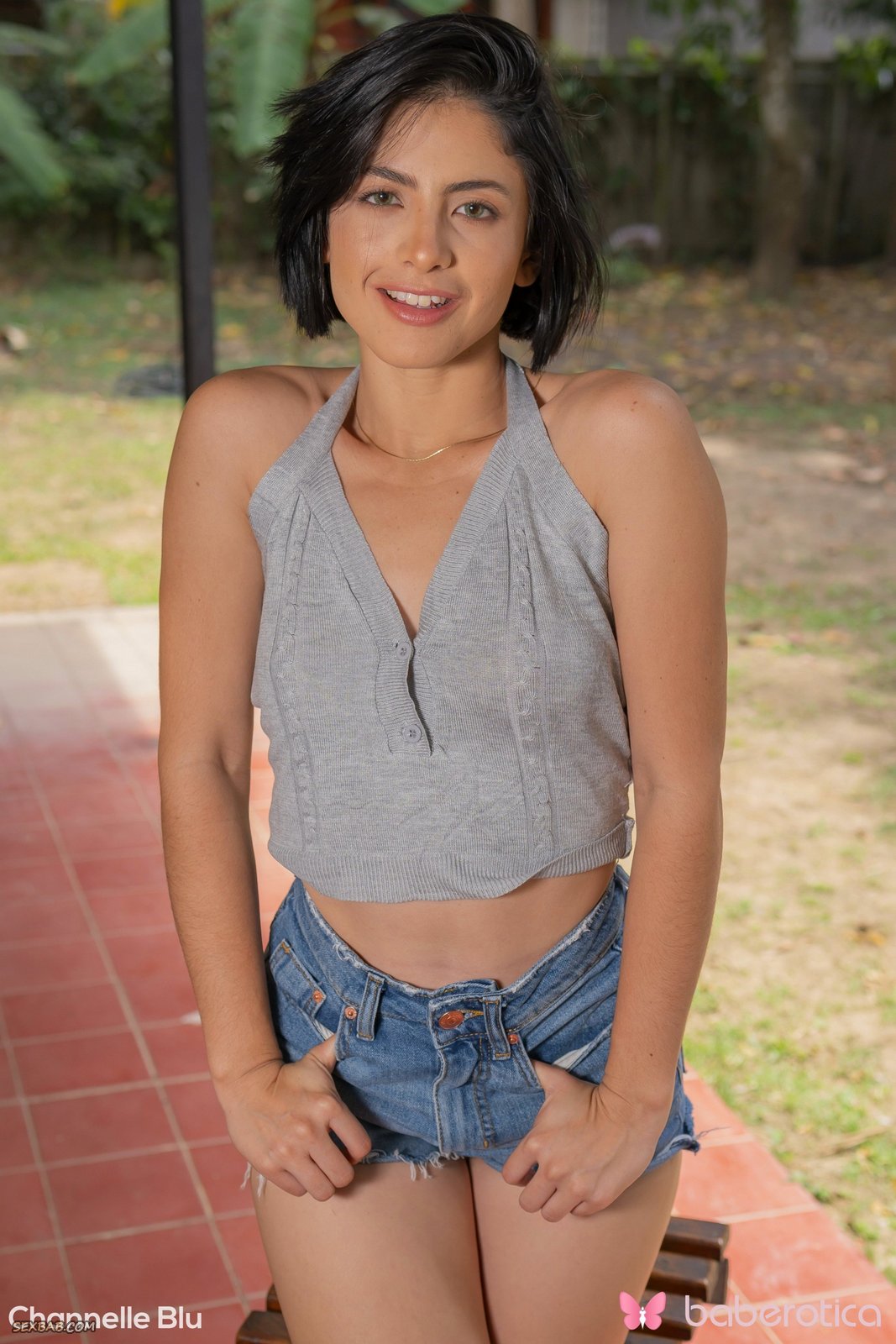 Описание: Страстно извиваясь на стуле и постепенно стягивая с себя джинсовые шортики с майкой, знойная брюнетка охотно разделась перед камерой до гола. Развратно повиляв своей аппетитной попкой, горячая телка возбуждающе раскрывает свою рогатку и нежно играется пальчиками с бритой пиздёнкой между ног.