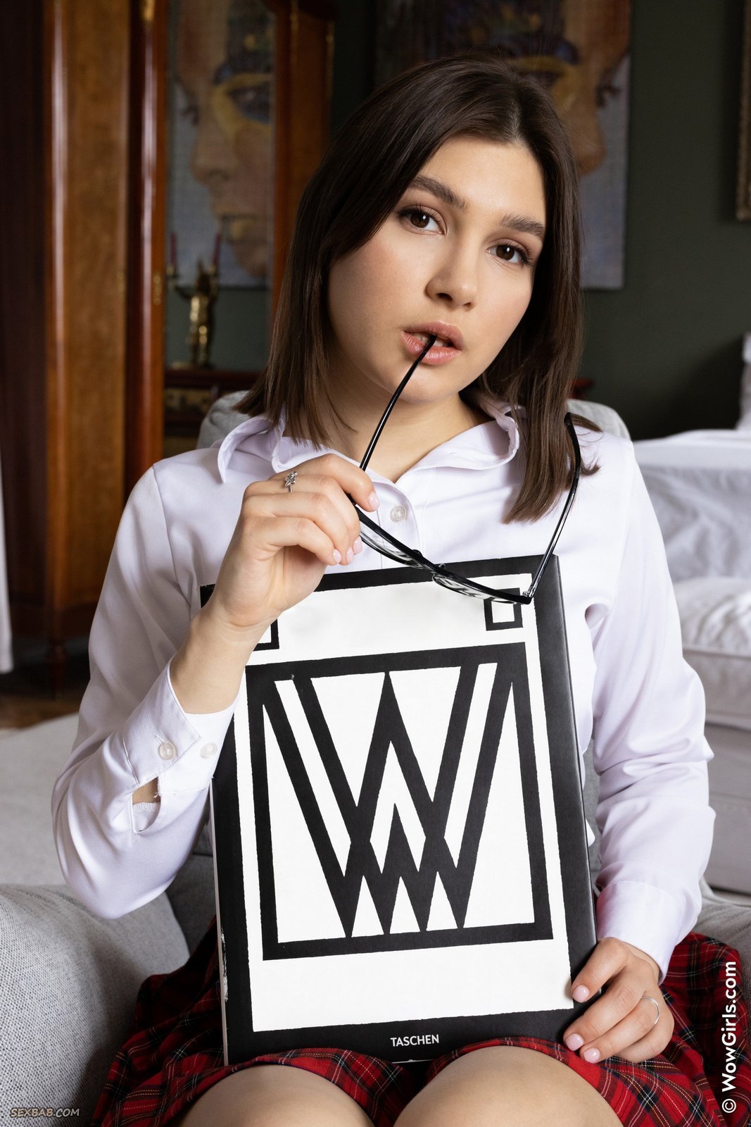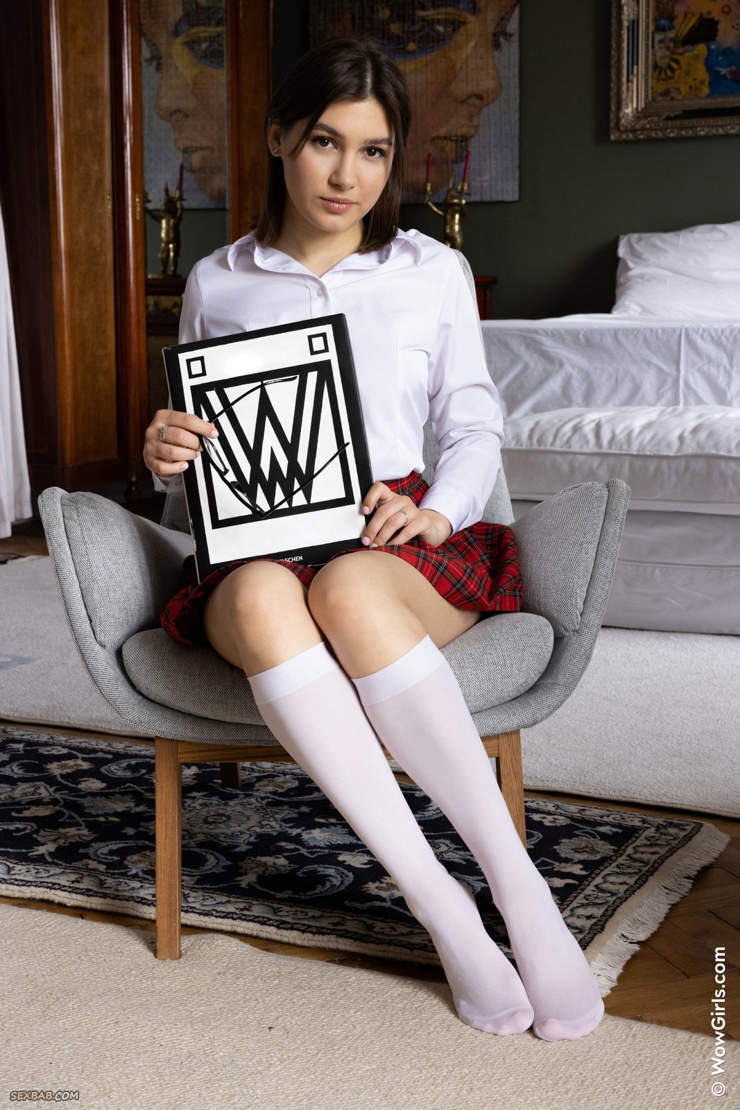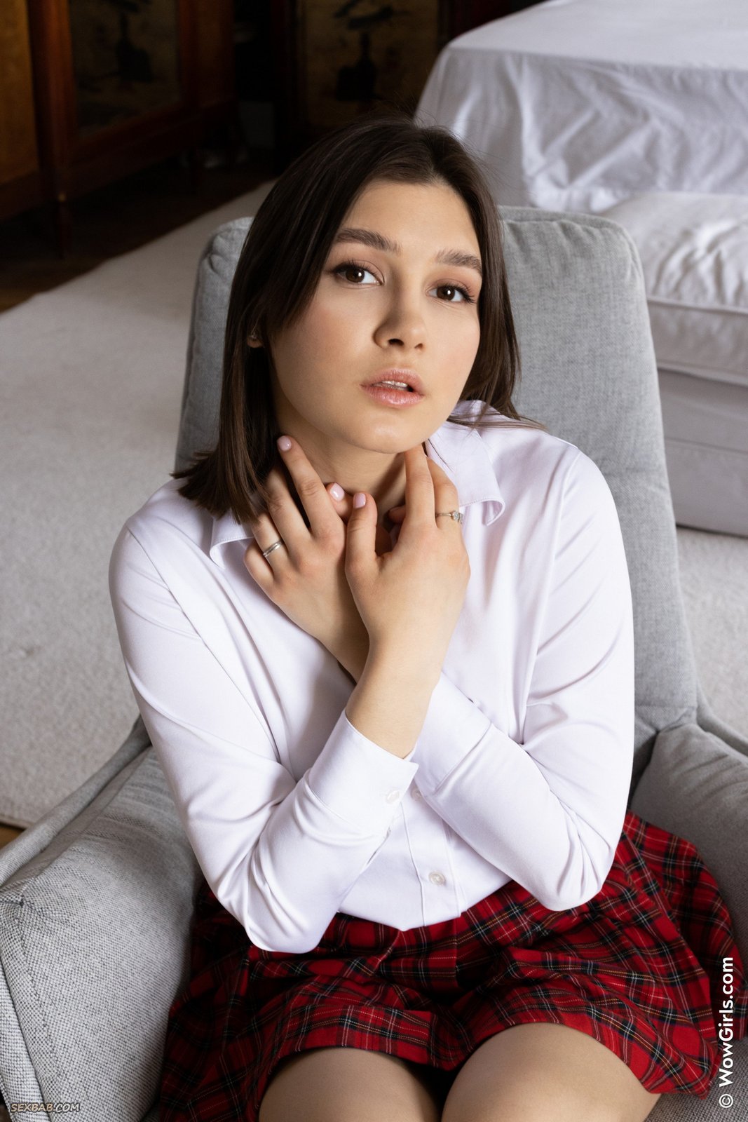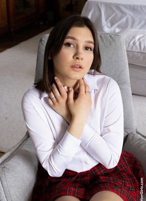 Описание: Кокетливо играясь перед камерой со своей одеждой, очаровательная аппетитная детка в мини юбке интригующе засветила свои милые белые трусики. Эротично раздевшись до гола, молодая шалунья залезла в кресло и принялась возбуждающе позировать в сем всем телом, похотливо выпячивая на камеру красивую попочку с гладкой промежностью и вовсю хвастаясь своей нежной манящей писечкой.