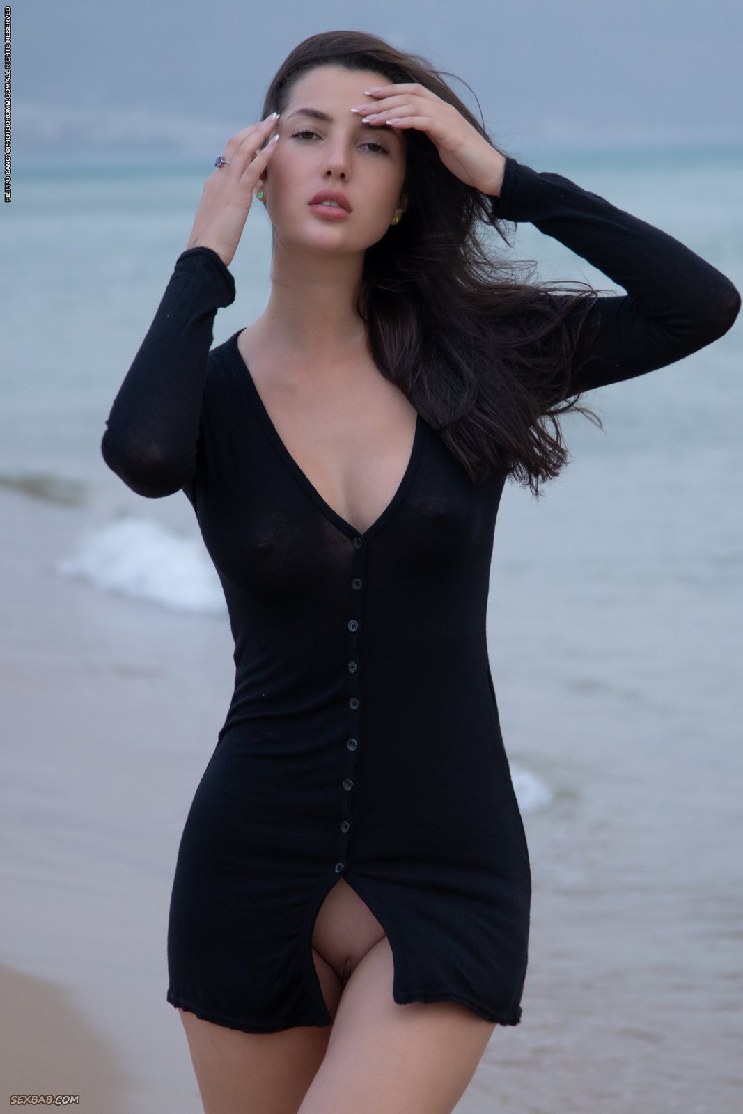 Описание: Решив похвастаться перед всеми своими красивыми упругими сиськами, горячая телка медленно снимает с себя всю одежду и страстно позирует на пляже голышом. Расслабленно лежа на песке и наслаждаясь накатывающими на нее волнами, сексуальная женщина с возбуждающими формами соблазнительно вытянула свои красивые ноги и мельком засветила бритый лобок.