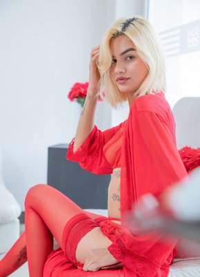 Описание: Страстно и безумно возбуждающе сорвав с себя красное нижнее белье, похотливая белобрысая шлюшка в чулках открыто демонстрирует на камеру свое стройное тело с маленькими титьками и проколотыми сосками и с удовольствием встала раком прямо на полу, крупным планом выпятив свою сочную крепкую задницу с раскрытой бритой промежностью.