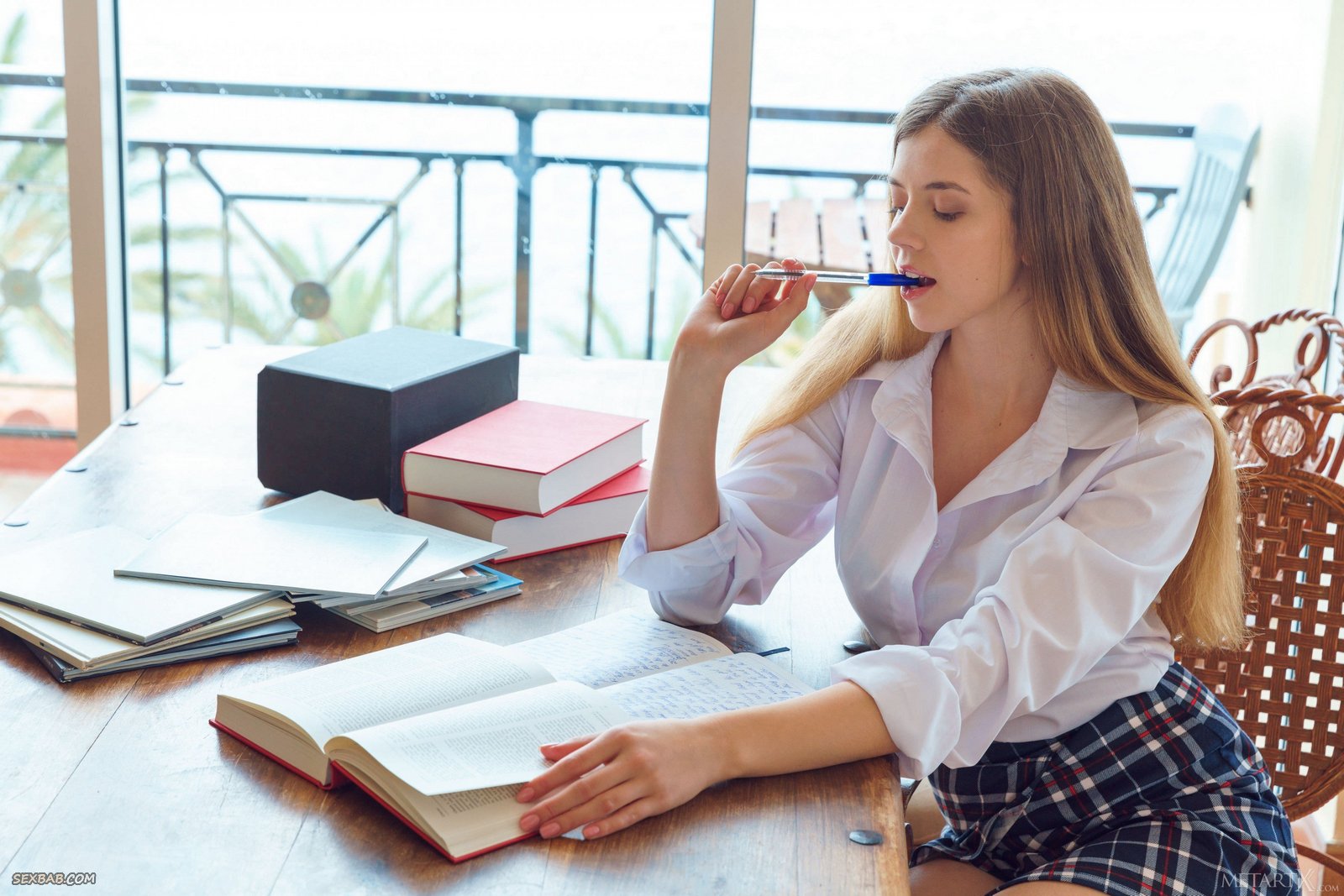 Описание: Без стеснения с себя откровенную одежду, молодая голая училка открыто показала на камеру свои сочные упругие сиськи. Развратно позируя на столе, сексуальная барышня чувственно прогибается в спине и нетерпеливо подмахиваю бедрами, крупным планом демонстрирует нам свою бритую розовую киску.