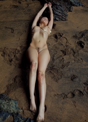 Описание: Возбуждающе светя своими миниатюрными острыми титьками с розовыми сосками, очаровательная голая нудистка с заросшей волосатой писькой развратно позирует на пляже, чувственно извиваясь всем телом на песке и выставляя на показ перед камерой свои испачкавшиеся интимные места.