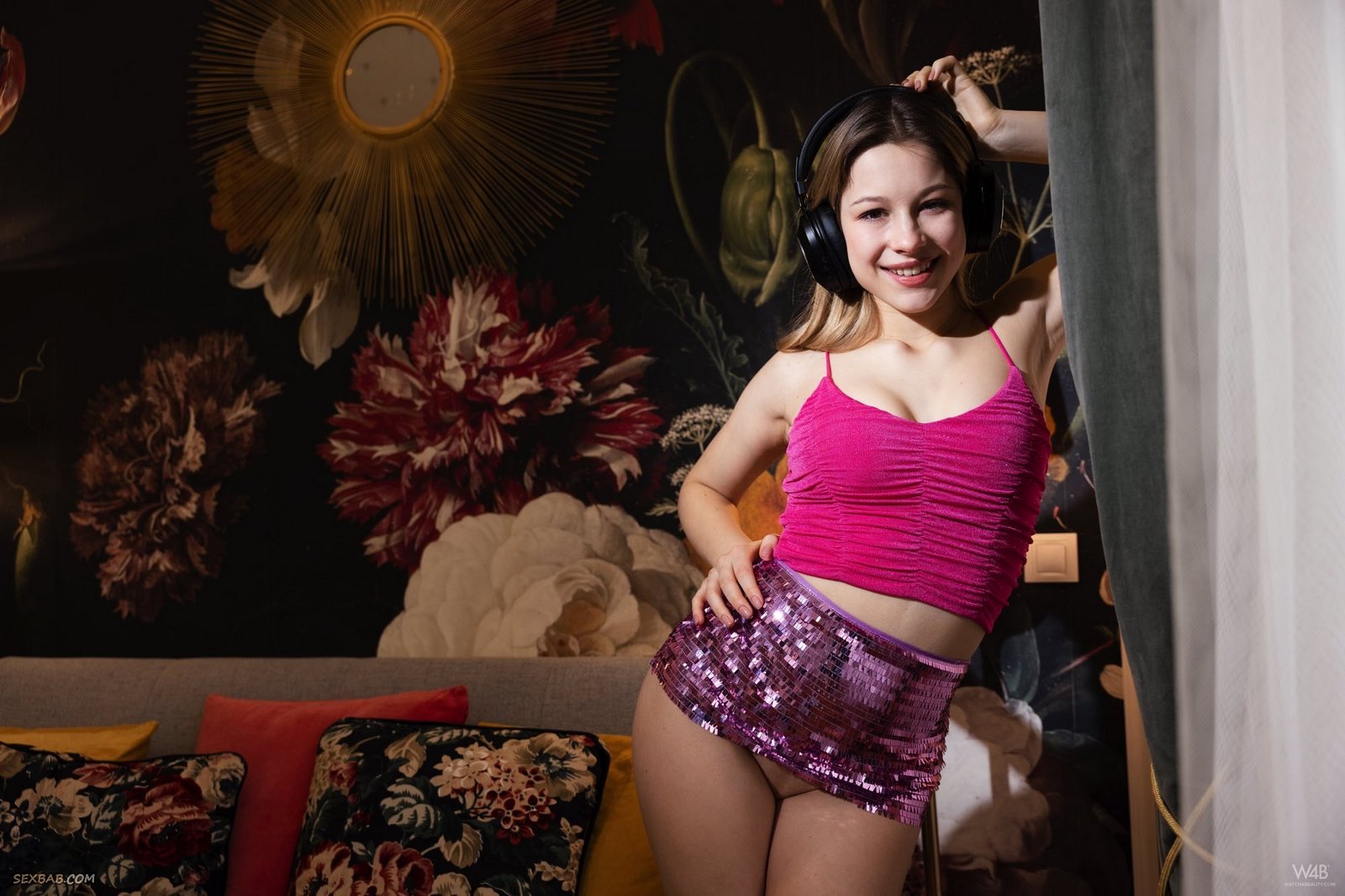 Описание: Позируя перед камерой в яркой розовой одежде и развязно устроившись на диване с высоко задранной юбкой, развратная чикса без трусов широко раздвигает ноги и вовсю светит своей голой бритой писькой, а затем выставляет на показ из-под майки сочные сиськи и начинает бесстыже трясти ими перед камерой.