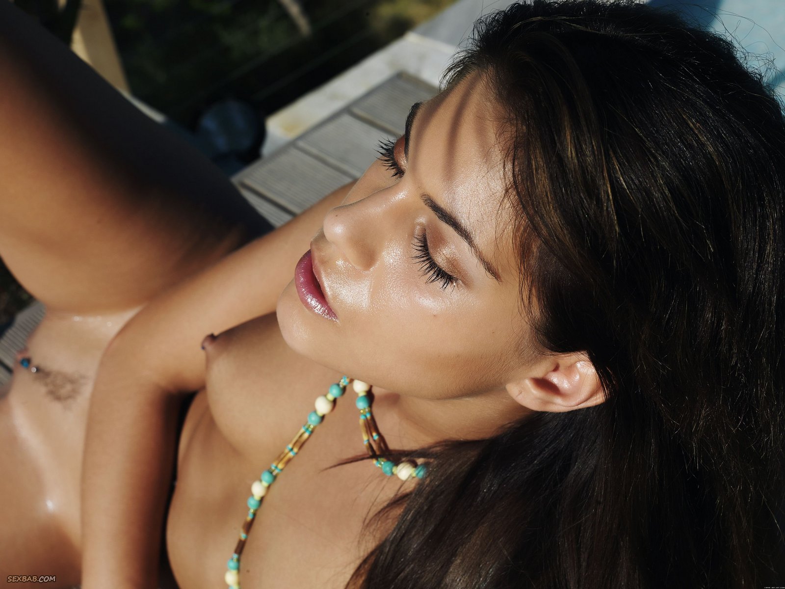 Описание: Изнывая от дикой жары, голая загорелая брюнетка томно позирует у большого прохладного бассейна и красиво изгибается всем телом с соблазнительной интимной стрижкой. Развратно расставив в разные стороны стройные красивые ноги, горячая девушка с миниатюрными сиськами с разных ракурсов показывает на камеру свою бритую темную письку с пирсингом в половых губках.