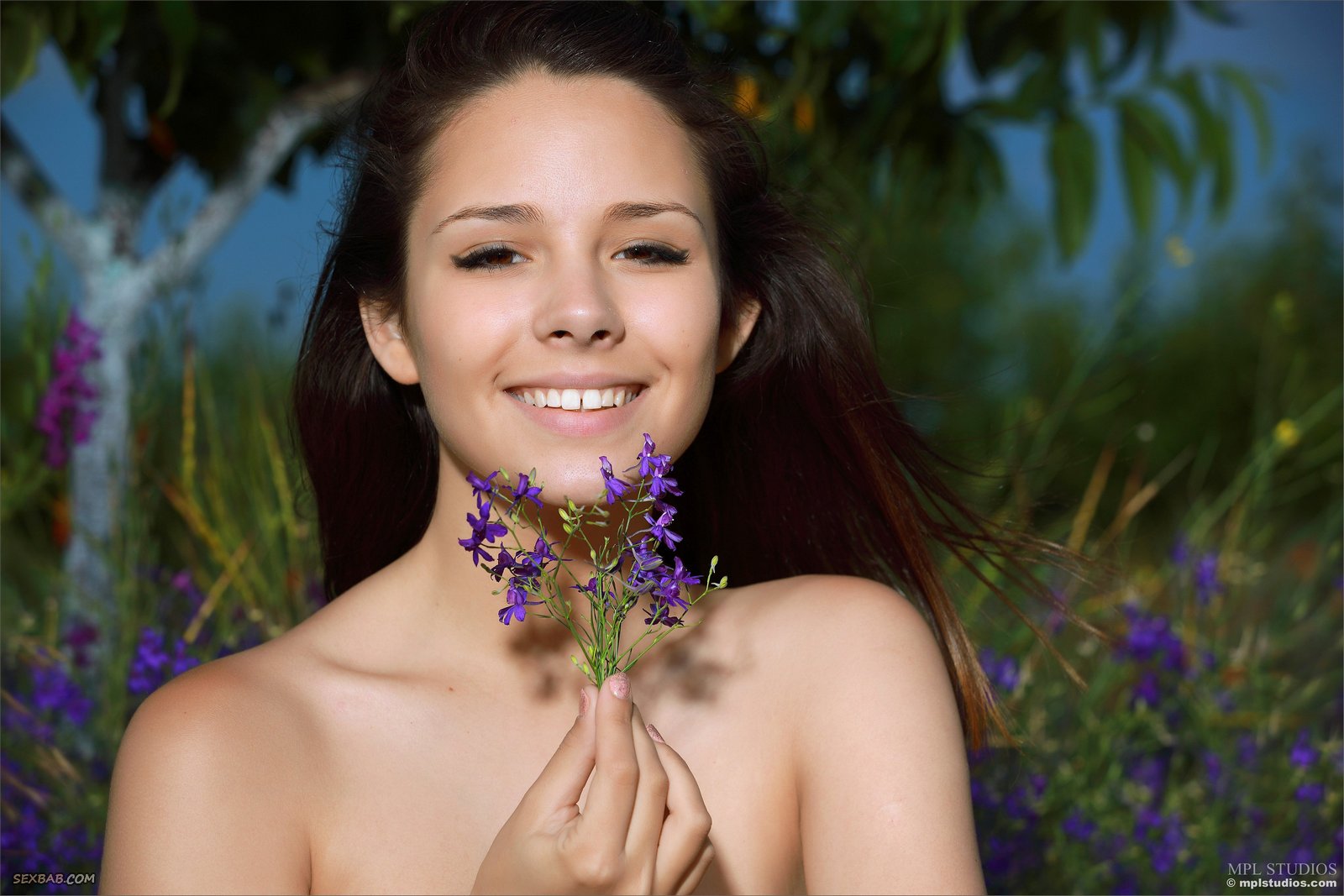 Описание: Устроившись перед камерой на траве среди ярких цветов, молодая детка без трусиков игриво светит своей бритой сочной киской, соблазнительно выпячивая ее в разных эротичных позах. Потом, медленно сняв с себя лифчик, красивая брюнетка с натуральными титечками полностью оголила свое стройное тело, с удовольствием позволяя нам любоваться им сколько угодно.