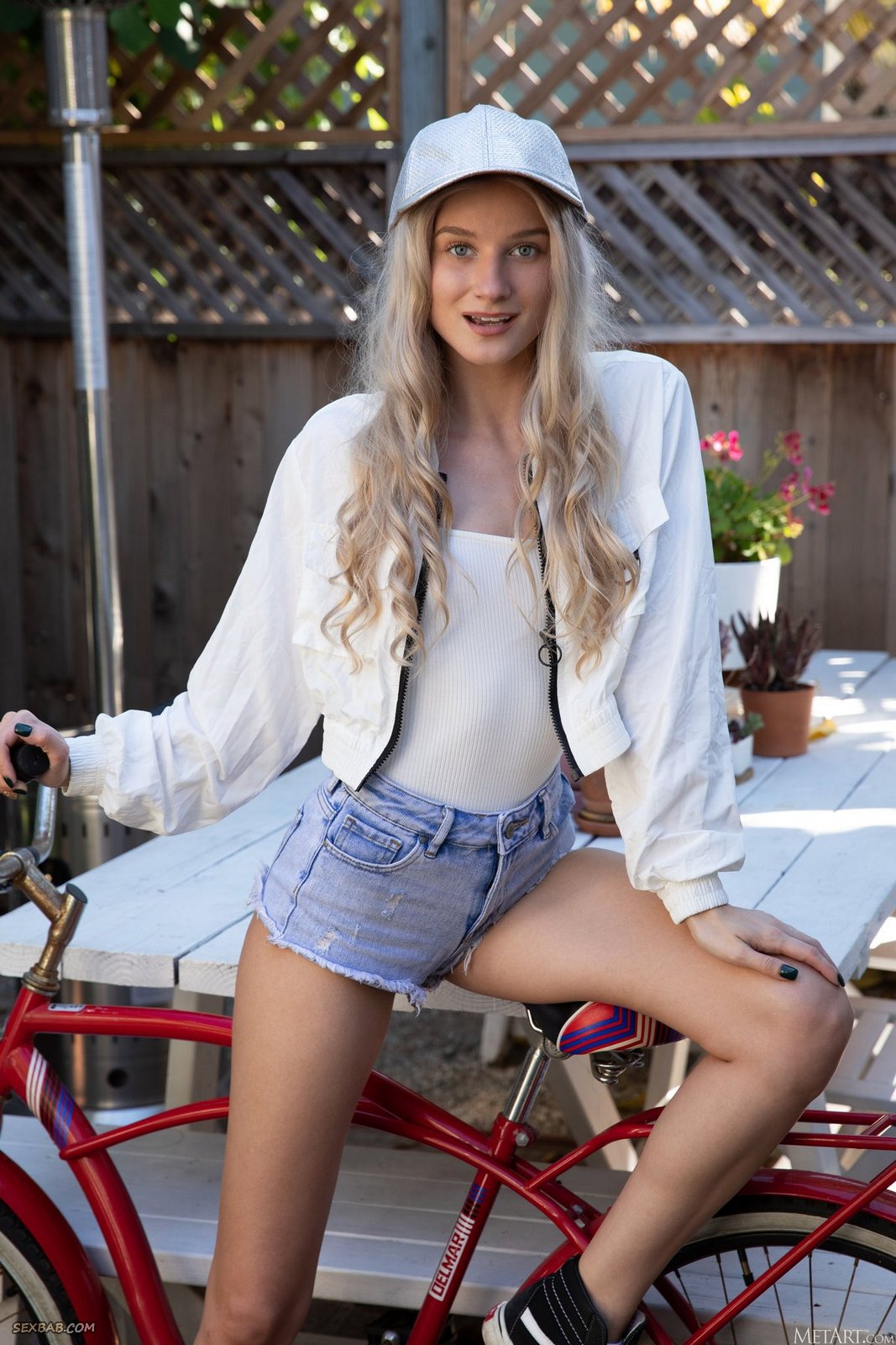 Описание: После активной поездки на велосипеде, уставшая дерзкая блондинка захотела немного расслабиться и постепенно оголила перед камерой красивую упругую попку, соблазнительно стянув короткие шортики. Раздевшись до гола, миниатюрная девица с плоскими сиськами развратно раскрывает перед камерой свою бритую промежность и с удовольствием проветривает сочную пухлую киску.