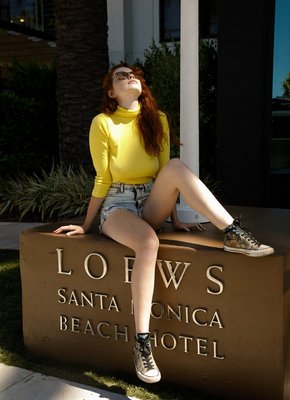 Рыжая сексуальная студентка в коротких шортах