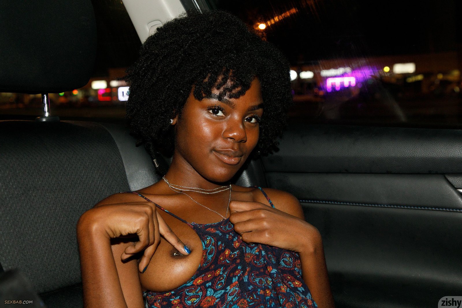 Описание: Симпатичная негритянка в коротком платье и трусиках гуляет тёплым вечером на улице, где она показала нам свою красивую упругую попку под юбкой, лихо задрав её подол. Испытывая от всего этого приятное возбуждение, чернокожая девушка забралась в машину и стянув нижнее бельё открывает нашему взору коричневую письку.