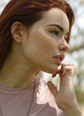 Описание: Красивая рыжеволосая девушка с веснушками и пухлыми губками, нарядившись в обрезанный топик и джинсы, отправилась гулять на улицу, с радостью позируя и ощущая желаемое удовольствие. В процессе сексуальная стройняшка засвечивала плоский животик и немного выглядывающие натуральные сиськи.