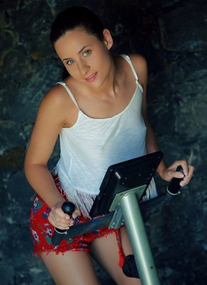 Описание: Чтобы поддерживать себя в форме, молодая брюнетка активно занимается на спортивном тренажере, а затем уставшая медленно раздевается до гола. Расслабленно устроившись на стуле, горячая вспотевшая девица раздвигает стройные ножки и крупным планом показывает свою голую гладкую киску с сочными половыми губками.