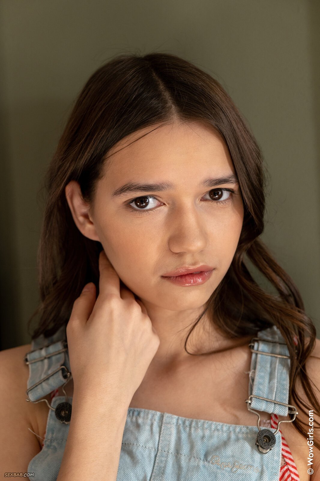 Описание: Молодая скромная милашка в джинсовом комбинезоне и кружевном белье медленно разделась до гола, медленно оголяя свое нежное худое тело. Голая детка с маленькими плоскими титьками и коричневыми сосками эротично позирует на полу и с разных ракурсов засвечивает на камеру свою бритую мягкую писю.