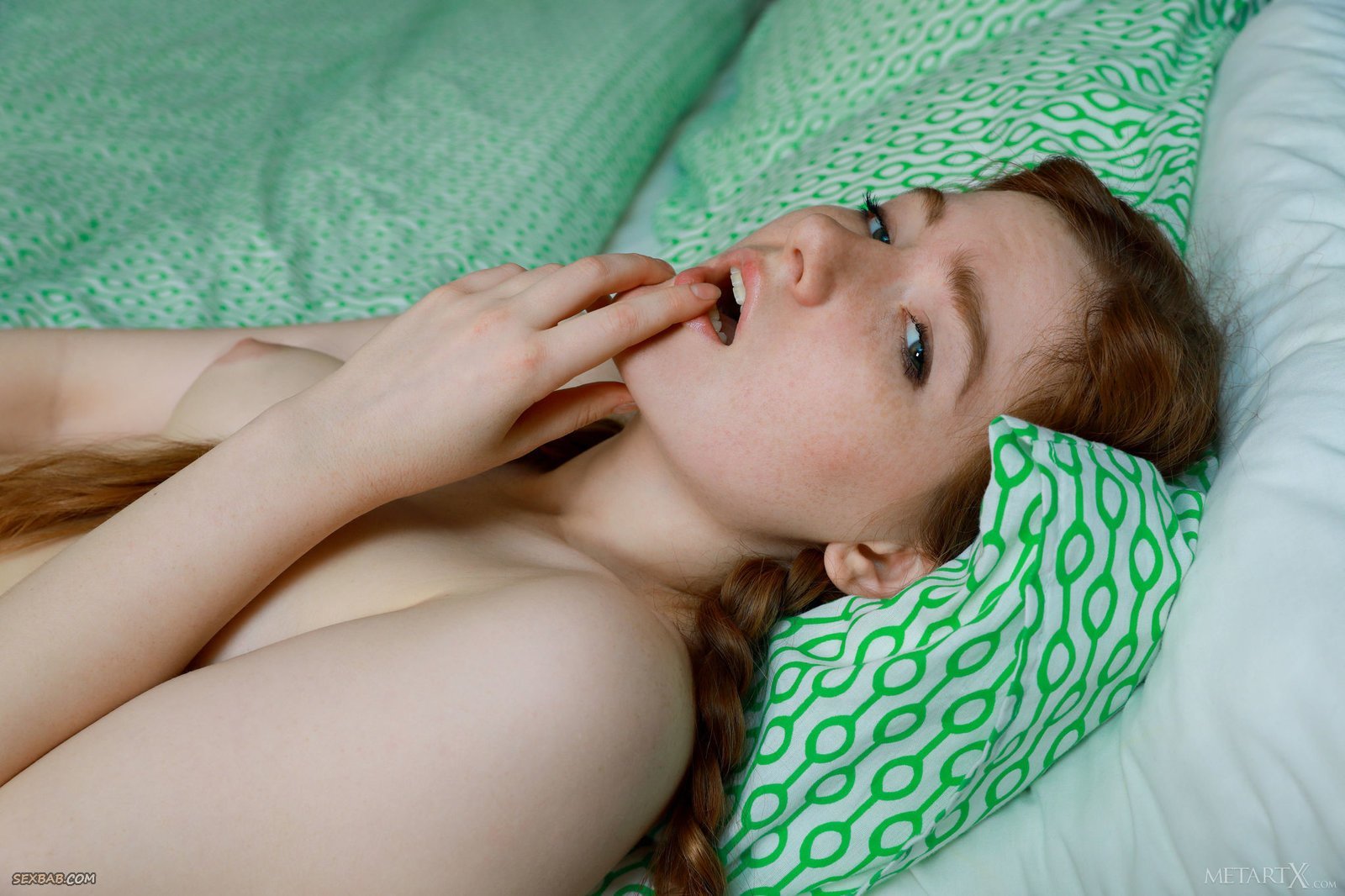 Рыжая девушка с косичками и голой киской