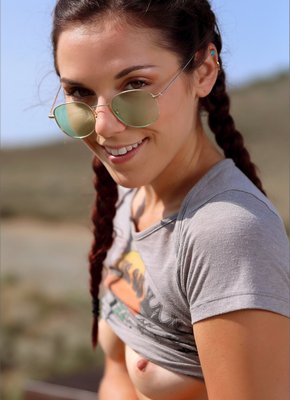 Описание: Выехав отдыхать на природу, активная стройная велосипедистка расслабленно катается по пустым проселочным дорогам и игриво оголила на камеру свои аккуратные упругие титьки. На очередной остановке, уставшая девица решила немного отдохнуть и разделась до гола, остужая свое потное горячее тело с красивой попкой и волосатым лобком.
