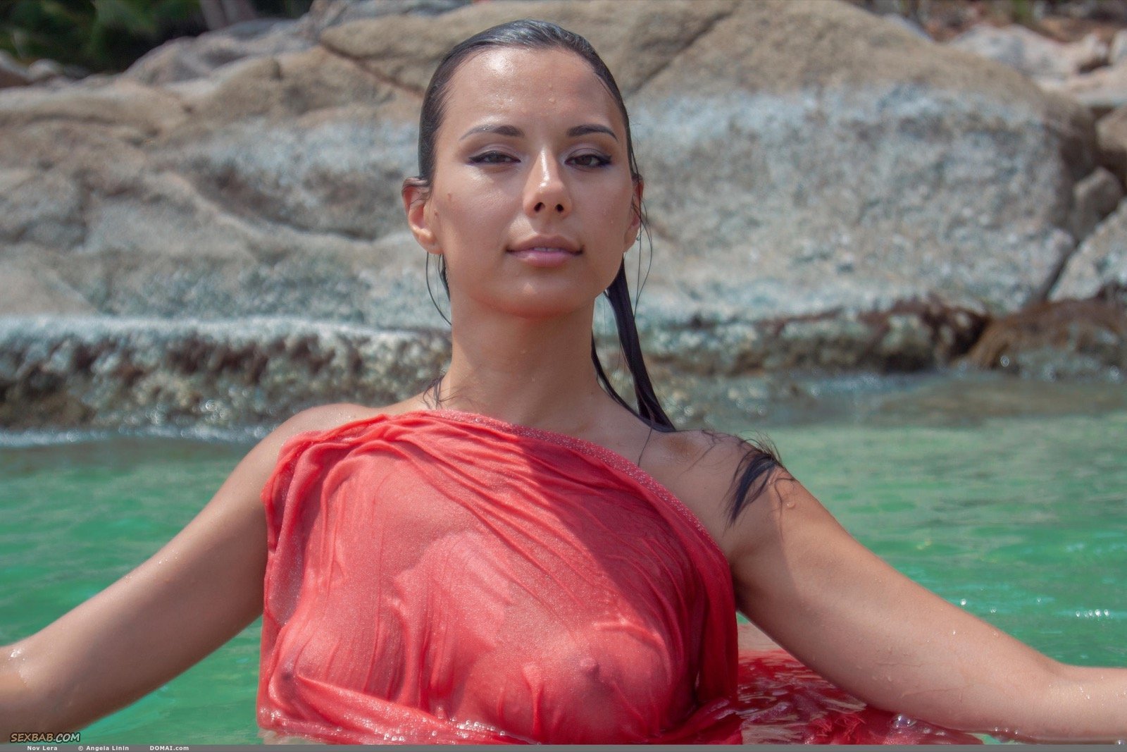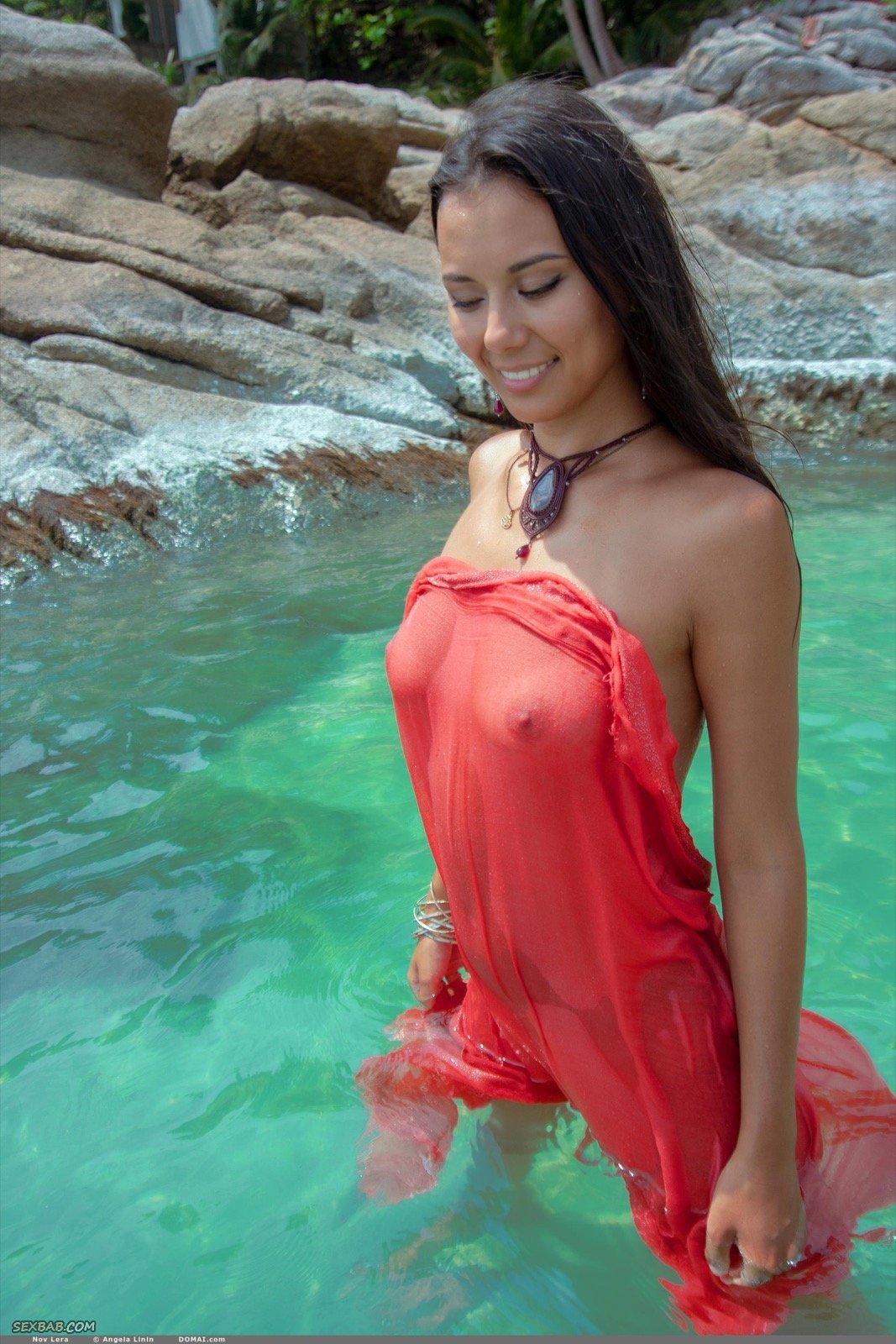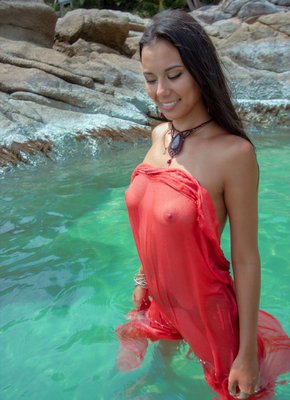 Описание: Прикрываясь тканью и эротично позируя в море, нежная голая девушка с торчащими маленькими сиськами и возбужденными сосочками ощущала от происходящего удовольствие. Плавая, стройняшка с сексуальным телом порой делала акцент на мокрой письке с интимной прической.