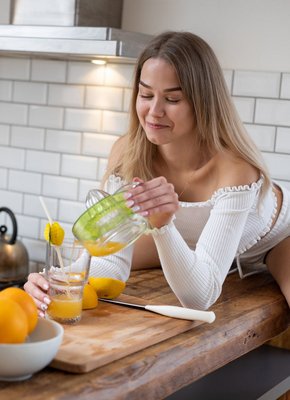 Молодая блондинка разделась до гола на кухне