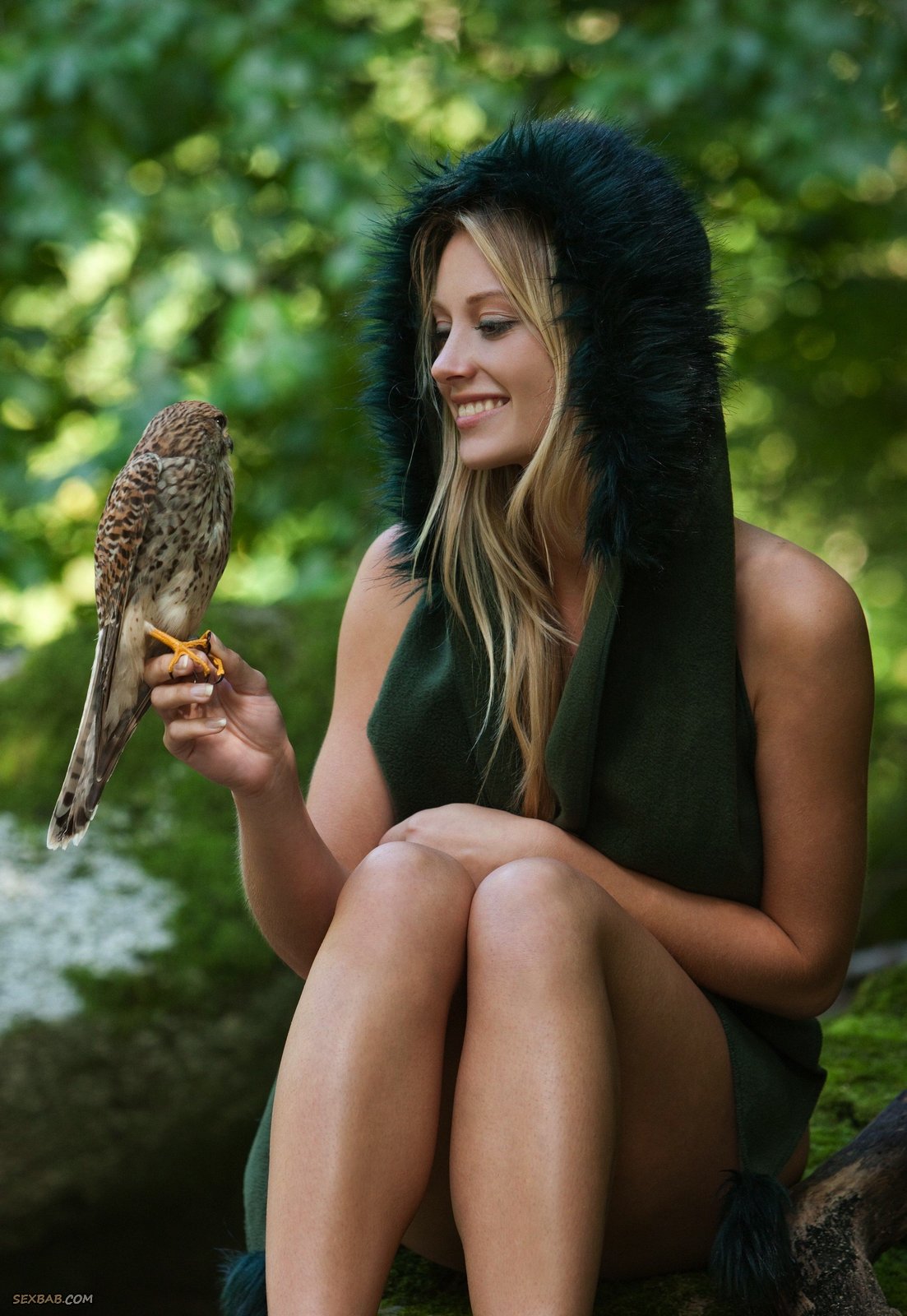 Сексуальная блондинка в лесу