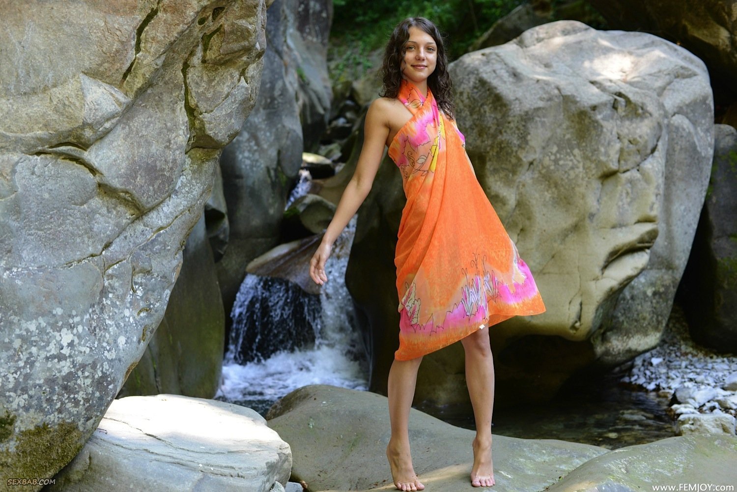 Описание: Оказавшись среди больших камней, стройная и полностью голая красавица, порой прикрываясь тканью, принимается эротично позировать. Мило улыбаясь и ощущая удовольствие, сексуальная девушка с маленькими сиськами и аккуратной торчащими сосками лучше всего засвечивала гладенькую письку.