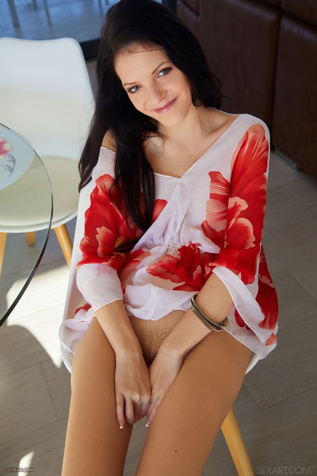 Описание: Расположившись на стуле, привлекательная брюнетка с голой писькой, скинув с себя остатки одежды, начинает грациозно прогибаться раком и раздвигать длинные ноги. В процессе съёмки, улыбчивая стройняшка нежно поглаживала себя руками, а так же старалась акцентировать наше внимание на её маленькой груди и попке.