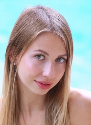 Описание: Очаровательная молодая блондинка с пухлыми губками, откровенно позируя у бассейна, в какой-то момент стянула с себя платье и трусы. Оставшись обнажённой стройняшка с маленькой грудью часто меняет соблазнительные позы, что позволяет нам разглядеть её бритую письку с гладким лобком и упругую попку.