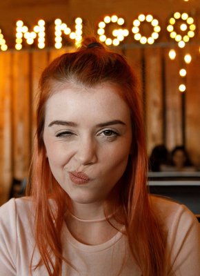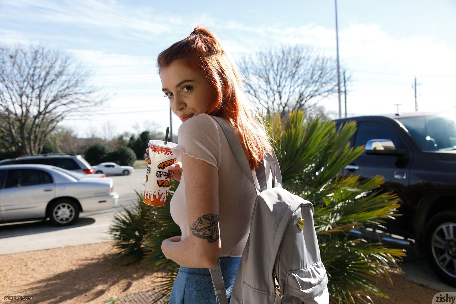 Рыжая шалунья гуляет в короткой юбке