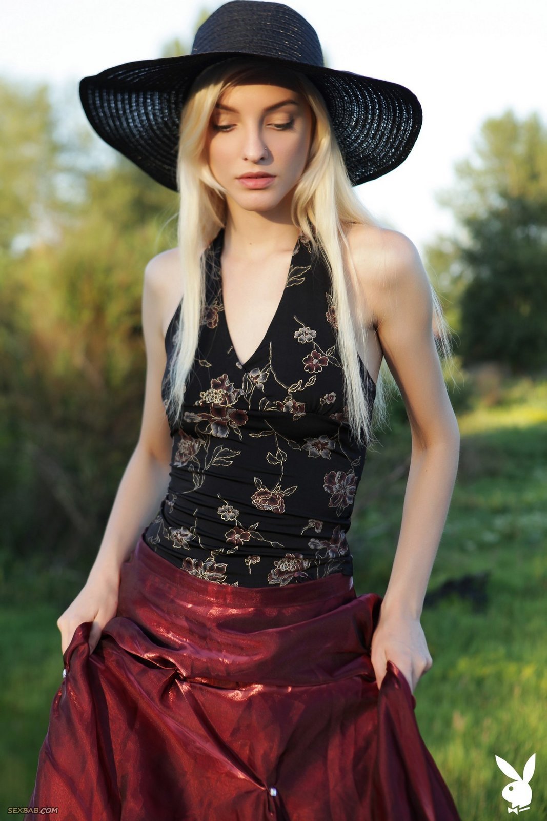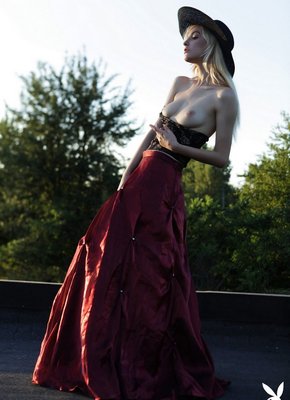 Описание: Нарядившись в необычный наряд, светловолосая украинка с пронзительным взглядом устраивает на крыше эротичную фото сессию от студии PlayBoy. Возбуждаясь от позирования, сексуальная девушка в процессе медленно раздевается и немного засвечивает маленькие сиськи и гладкий лобок.