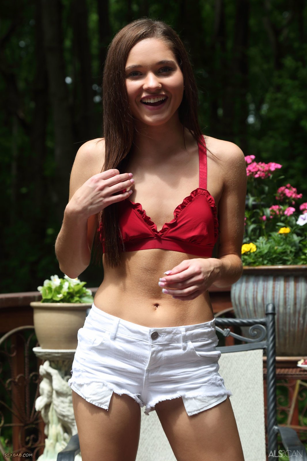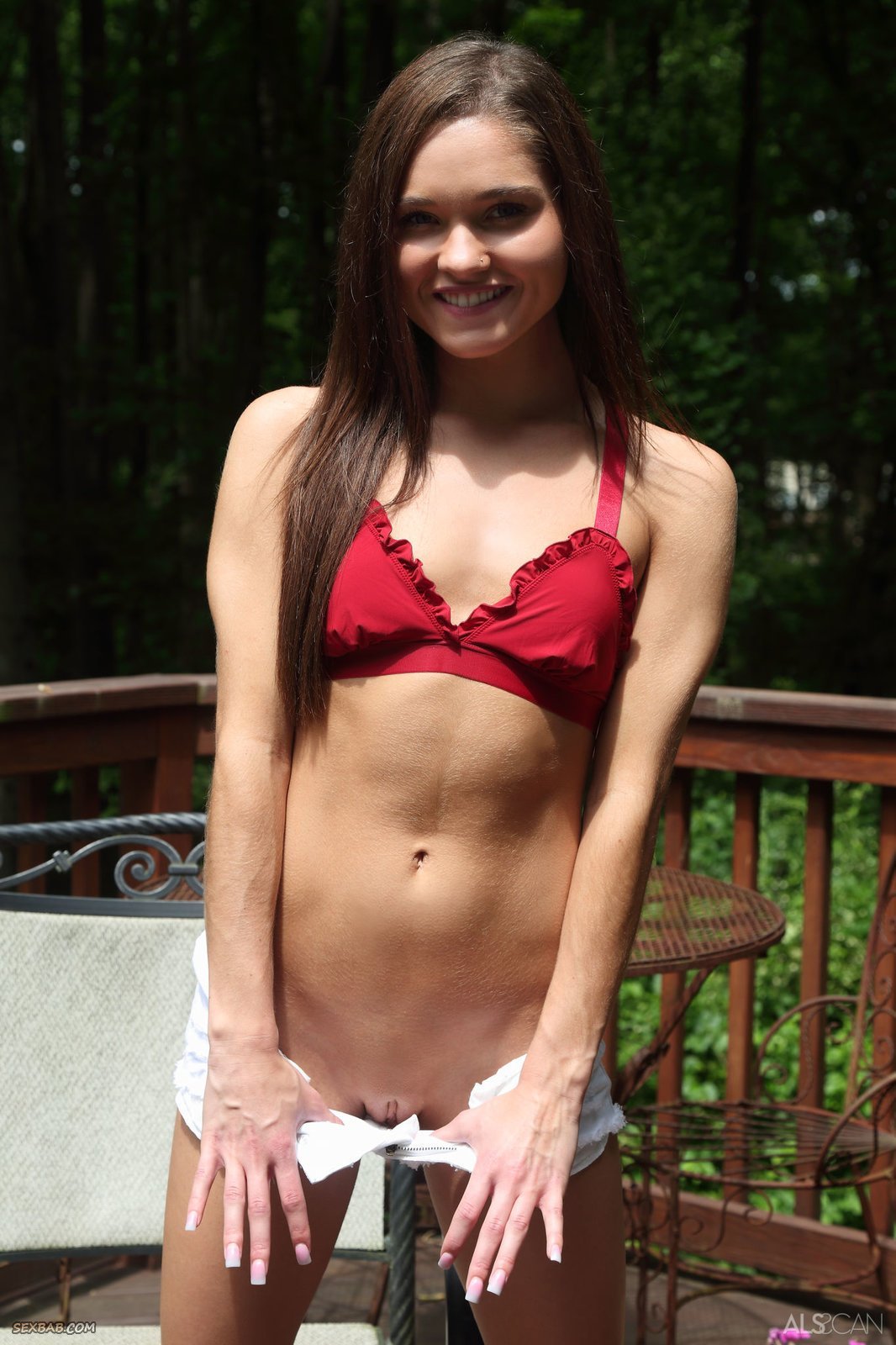 Описание: Выйдя на крыльцо загородного дома и расположившись на стуле, тощая извращенка с плоским животиком и сиськами, широко улыбаясь, медленно раздевается до гола и дрючит бритую киску перед камерой. В обнаженном виде сексуальная стройняшка старательно пытается впихнуть в бритую щёлку скакалку, которая довольно туго влазит в изнемогающее влагалище.