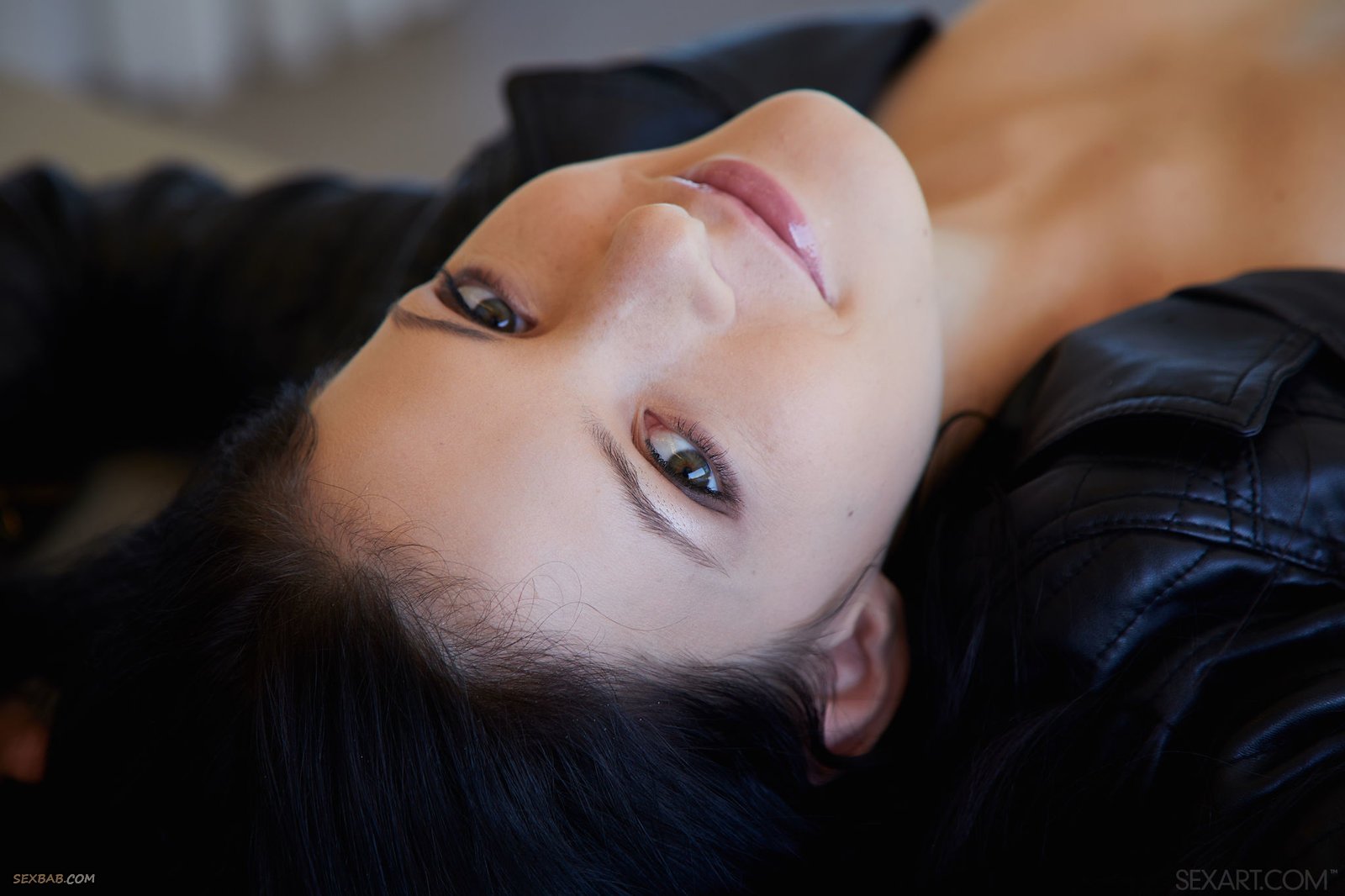 Описание: Обаятельная девушка с пронзительным взглядом, надев на голое тело кожаную куртку и обув босоножки, начинает эротично позировать у себя дома на кухне. В процессе, прогибаясь раком, демонстрируя сочную попку и гладко выбритую письку с волосиками на лобке, стройняшка параллельно сжимала упругие натуральные сиськи руками.