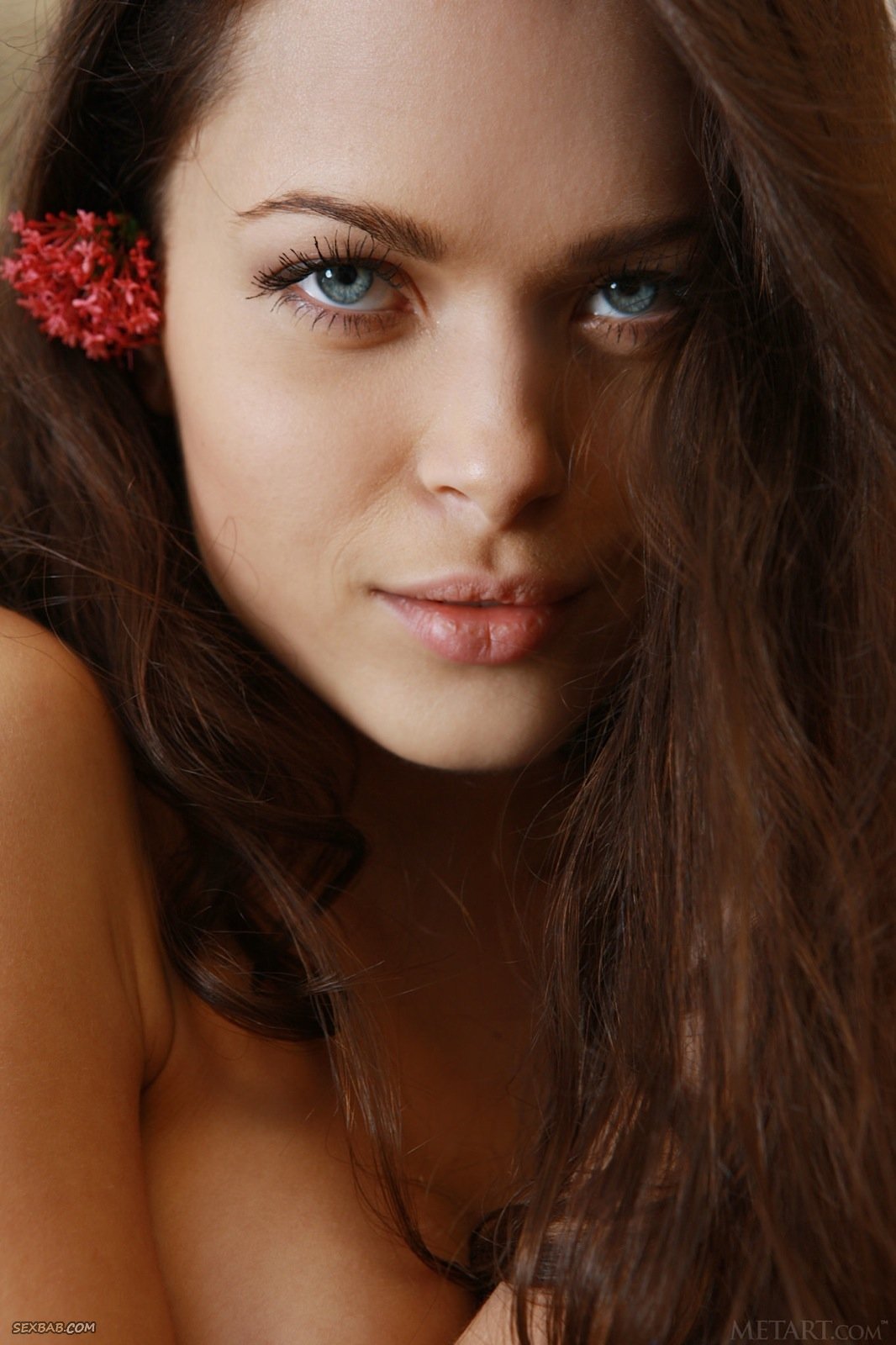 Описание: Невероятно красивая девушка с голубыми глазами и каштановыми волосами, кокетливо позируя перед камерой, старательно и максимально эротично разделась до гола. Обнаженной, сексуальная стройняшка с плоскими сиськами, поворачиваясь к фотографу разными сторонами своего худощавого тела, чаще всего показывает бритую письку с прической на лобке и тощую попку.
