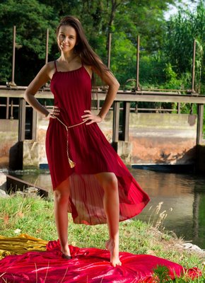 Описание: Устроив соблазнительную съёмку перед фотокамерой, нежная и довольно грудастая няшка с худенькой талией начала эротично позировать и медленно снимать длинное платье. Оголившись, стройная красотка подробно демонстрирует натуральные сиськи и бритую письку с гладким лобком, порой вставая на коленки и поглаживая волосы руками.