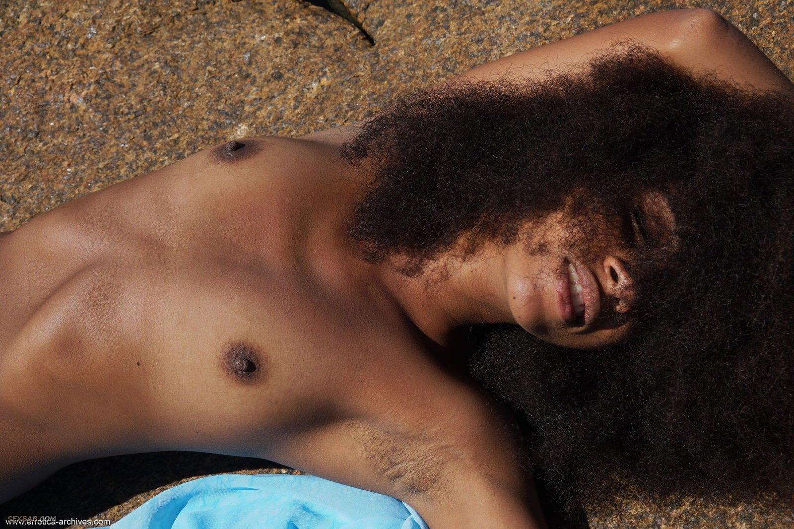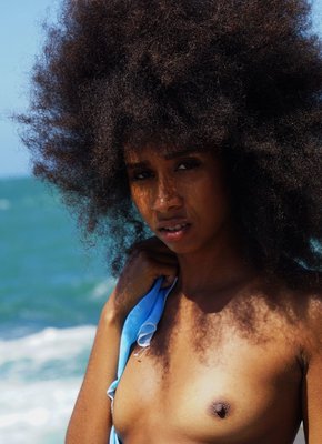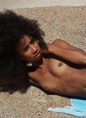 Описание: Прикрываясь платочком, полностью обнаженная негритянка с лохматой киской устраивается на камнях у моря и начинает эротично позировать, наслаждаясь процессом и мило улыбаясь. В дальнейшем стройняшка с маленькими сиськами ложится на спину и раздвигает ножки, моментально открывая перед нами волосатую киску с заросшим лобком, а перевернувшись на живот, девушка демонстрирует попку.