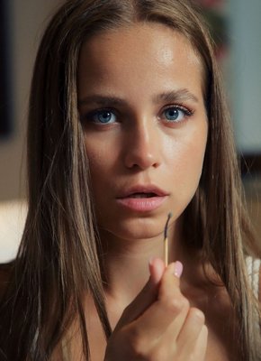 Описание: Привлекательная и весьма сексуальная молодая девка с радостью и максимально медленно снимает короткую юбку с лифчиком и устраивается на кресле. Лежа на боку, стройняшка с маленькой грудью поджимает коленки, и акцентирует внимание на красивой подкаченной попке и бритую возбуждающей письке.