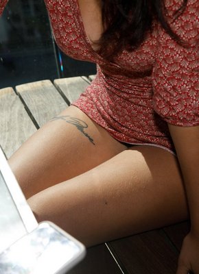 Описание: Прогуливаясь по городу, веселая девица с темными вьющимися локонами с азартом задирает короткое платье и показывает трусики под ним. Увлекаясь эротической фото съёмкой, сексуальная милашка в процессе так же демонстрировала натуральные титьки, вытаскивая их из глубокого декольте.