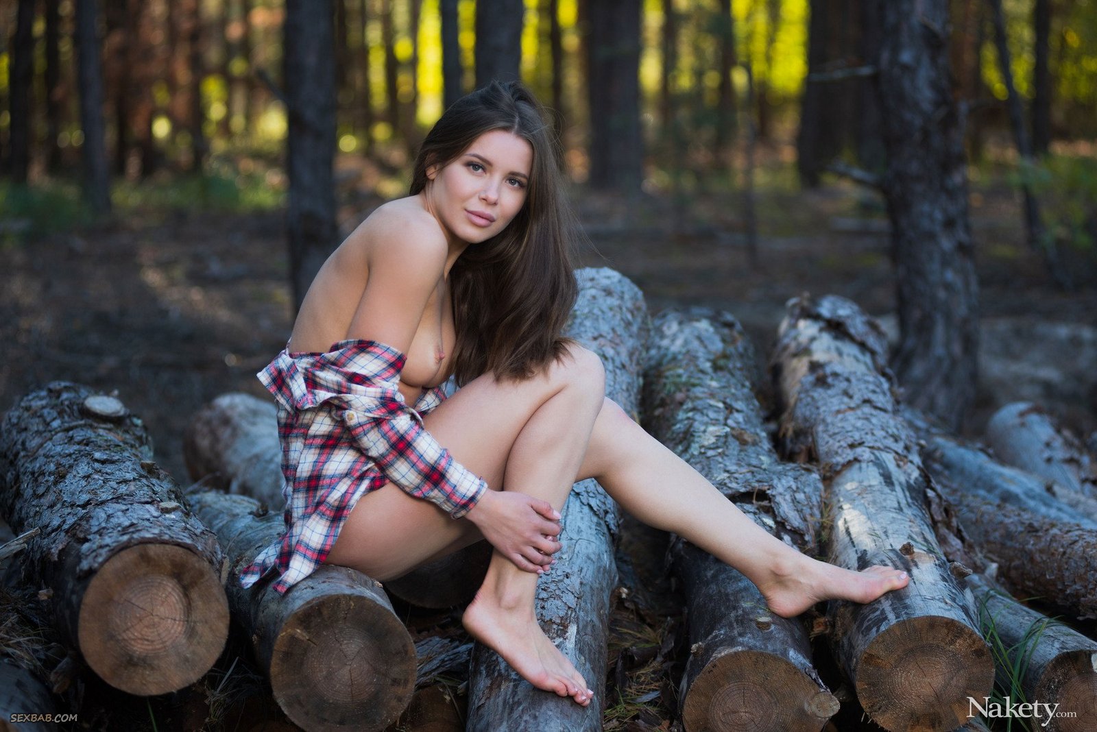 Описание: Выбравшись в лес и устроившись на куче бревен, обнажённая и невероятно привлекательная девушка в клетчатой рубашке старательно меняет разные ракурсы и засвечивает красивую жопу. Наслаждаясь процессом, сексуальная стройняшка так же не постеснялась показывать нам её бритую письку и маленькие сиськи с торчащим сосочками.