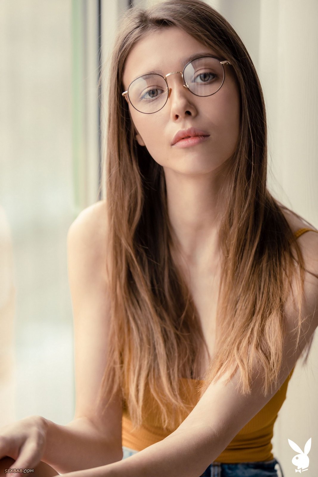 Описание: Сидя на подоконнике, молоденькая студентка с длинными волосами в очках строит глазки и в процессе эротично оголяет натуральные висячие сиськи. Обнаженной стройняшка нежно поглаживает плечи руками, что вызывает желаемое удовольствие, и так же немного засвечивает бритую письку с гладким лобком.
