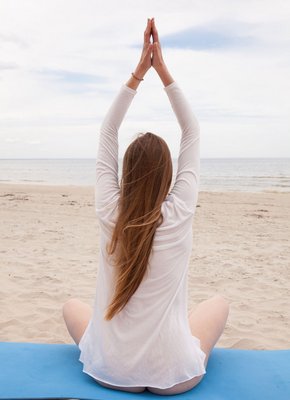Молодая девка без трусиков занялась йогой на пляже