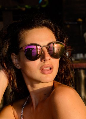 Описание: Начав позировать в платье и очках, сексапильная девушка возбуждающе приоткрывала ротик, а переодевшись в купальник отправилась на пляж, где продолжая начатое нежилась в воде. В процессе очаровательная крошка чередует разные позиции, а под конец полностью оголяется, засвечивая маленькие сиськи с волосатой писькой.