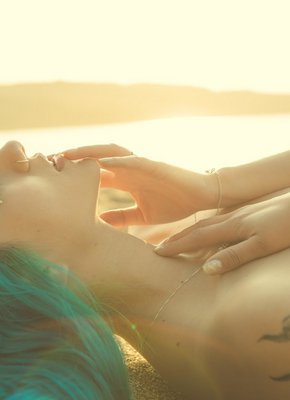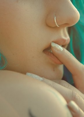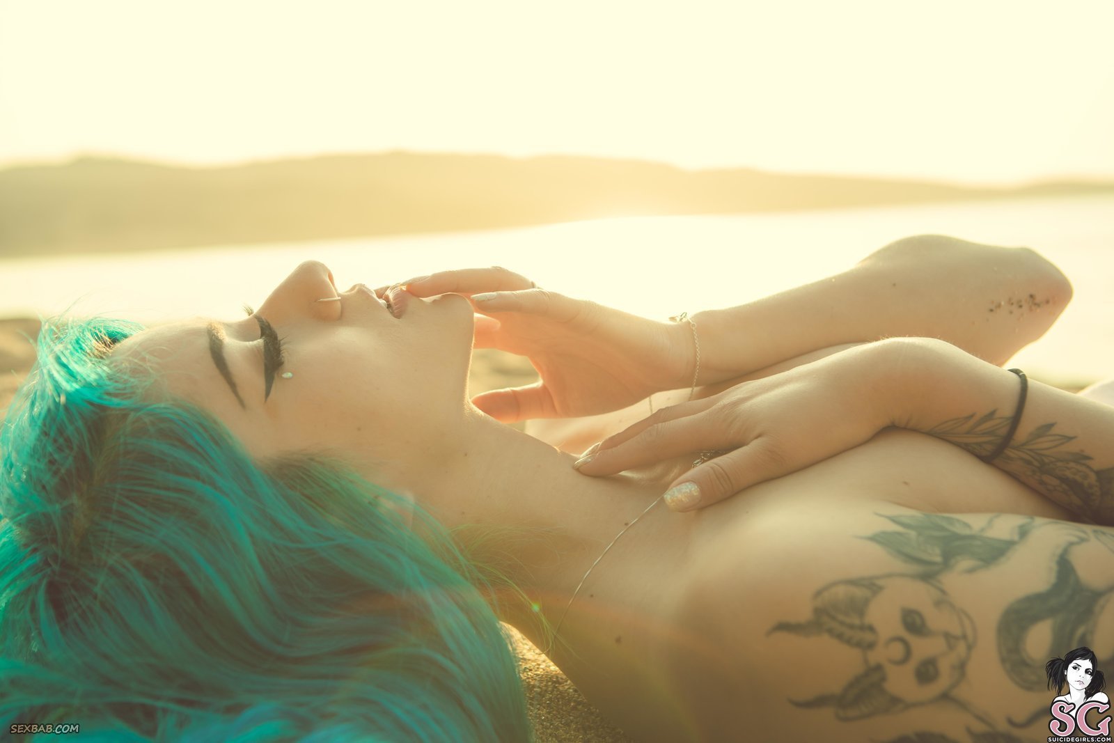 Неформалка с пирсингом на пляже