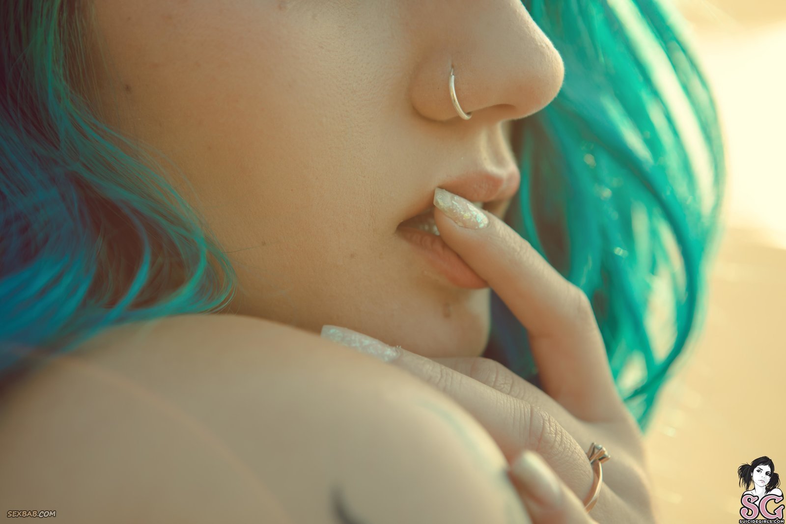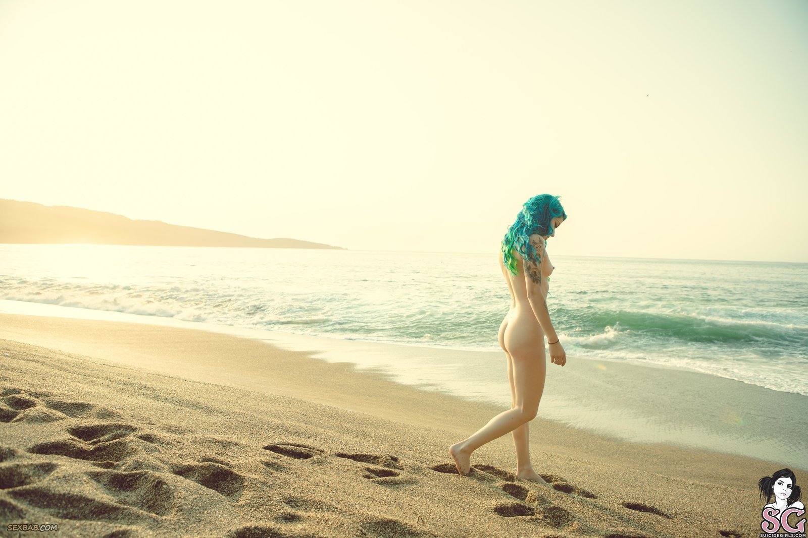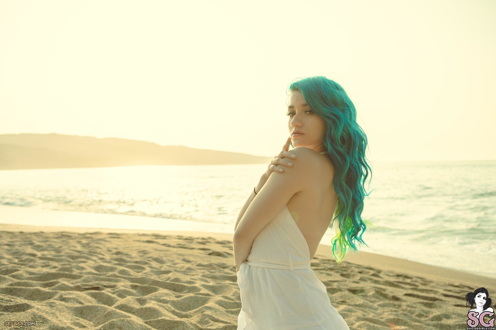 Описание: Прогуливаясь на пляже, неформалка с пирсингом в ноздре и яркими волосами решается на откровенную съёмку в стиле ню и медленно раздевается перед камерой, освобождаясь от лёгкого платья и кружевных трусиков. В поисках лучшего ракурса, красавица кувыркалась на песке, а порой прогибалась раком и оттопыривала упругую попку.