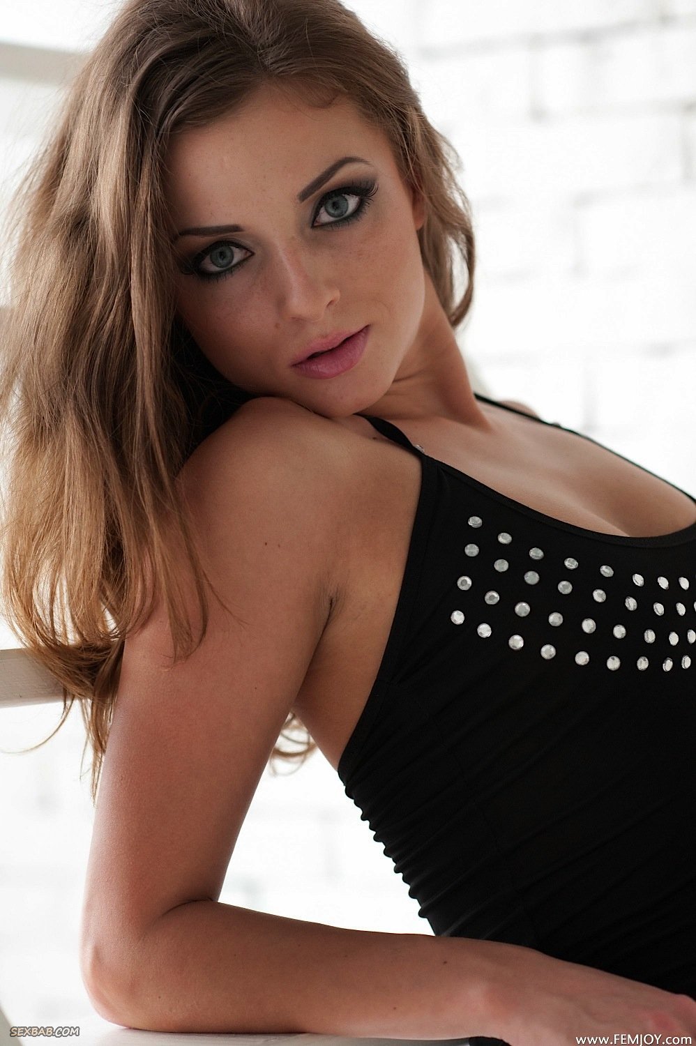 Описание: Устроившись на лестнице в фото студии, красивая и очень соблазнительная модель в чёрных чулках стягивает с себя короткое платье и грациозно вытягивается на ступеньках. Получая удовольствие от съёмки, стройняшка с маленькой грудью в дальнейшем принимала и другие ракурсы, что позволило ей засветить попку и бритую письку.