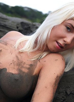 Описание: Эротично валяясь на пляже, сексуальная блондинка с голым телом, измазавшись песком, ощущает возбуждение и мило улыбается. В будущем молодая девушка с натуральными сиськами и подтянутой попочкой забралась в воду и обмывшись продемонстрировала мокрую бритую письку с гладким лобком.