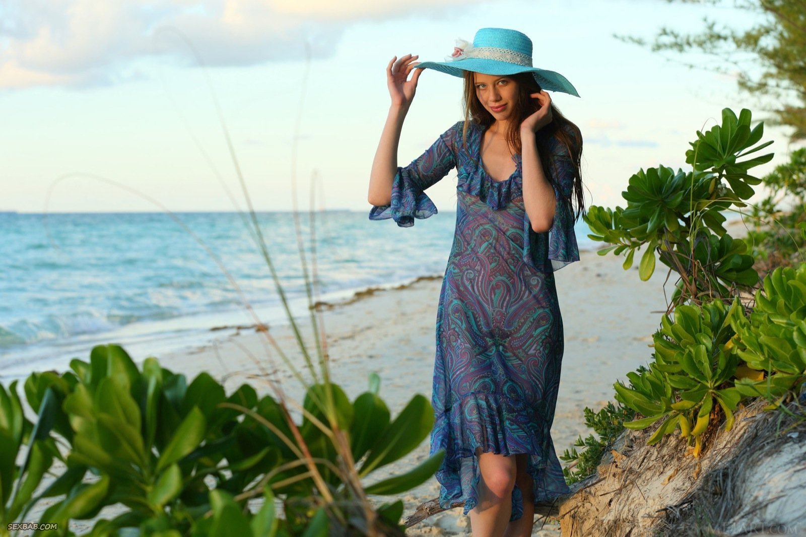 Описание: Гуляя и позируя на пляже в длинном платье и шляпке, высокая девица с красивой внешностью раздевается до гола, а наслаждаясь закатом и теплой водой, она забираясь в море. Оказавшись же совершенно голой, сексуальная красавица с радостью показывает маленькую грудь с гладко выбритой писькой.