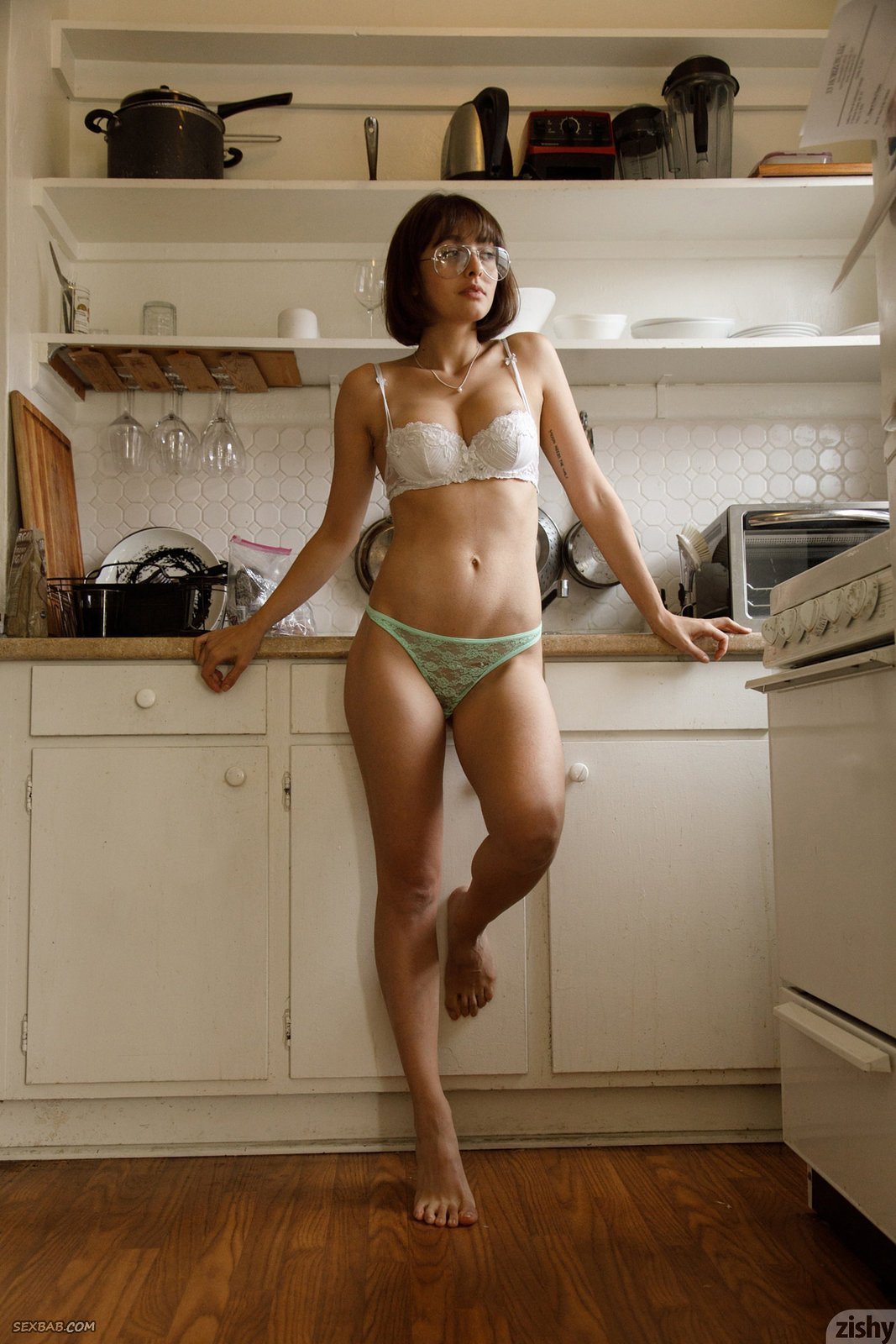 Описание: Скинув кружевной лифчик, молоденькая шатенка в трусиках и очках начинает засвечивать натуральные сиськи и развлекаться у себя дома, параллельно чередуя разные позиции и места. В процессе, очаровательная стройняшка все же немного приспускала нижнее белье и показывала гладенький лобок, в этот же момент страстно обхватывая грудь с красивыми сосочками руками.