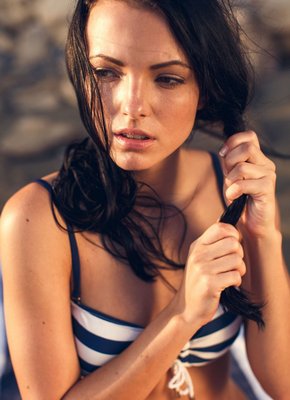 Описание: Вернувшись с пляжа, молоденькая брюнетка, скинув купальник, начинает голая мыться в душе, в процессе трогая руками сексуальное тело и чередуя разные возбуждающие позиции. Чаще всего темноволосая девушка с маленькими сиськами прогибалась раком и раздвигала промежность, выставляя на показ мокрую бритую письку и сочную попочку.