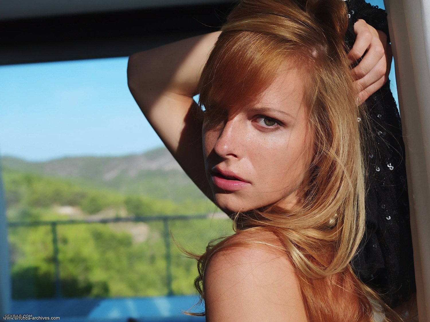 Описание: Устроив фото сессию в загородном доме, секси дамочка со светлыми волосами эротично позирует и медленно раздевается догола. Обнаженной милашка располагается на полу и поглаживая роскошные волосы руками, демонстрирует нам свои натуральные классные буфера с гладко выбритой писькой, а так же и другие прелести.