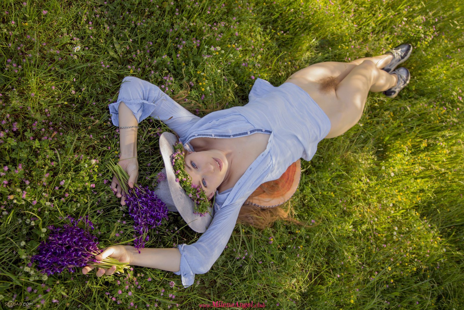 Описание: Накинув на голое тело рубашку и надев шляпку, молодая худая девица с заросшим лобком и милой внешностью начинает эротично позировать на природе, наслаждаясь и чередуя разные возбуждающие ракурсы. В процессе стройная красотка с маленькой грудью подробно демонстрировала попку и бритую письку.