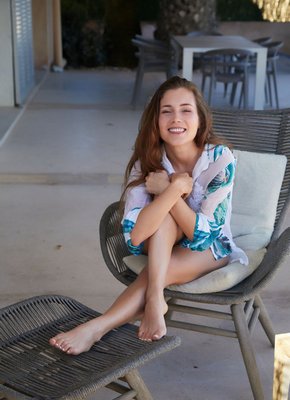 Описание: С большим удовольствием избавившись от всей одежды и развалившись голышом в кресле, развратная девушка с нежными миниатюрными прелестями трогает перед камерой свой пушистый волосатый лобок и как можно ближе выпячивает к нам свою бритую сочную киску между стройных разведенных ножек.